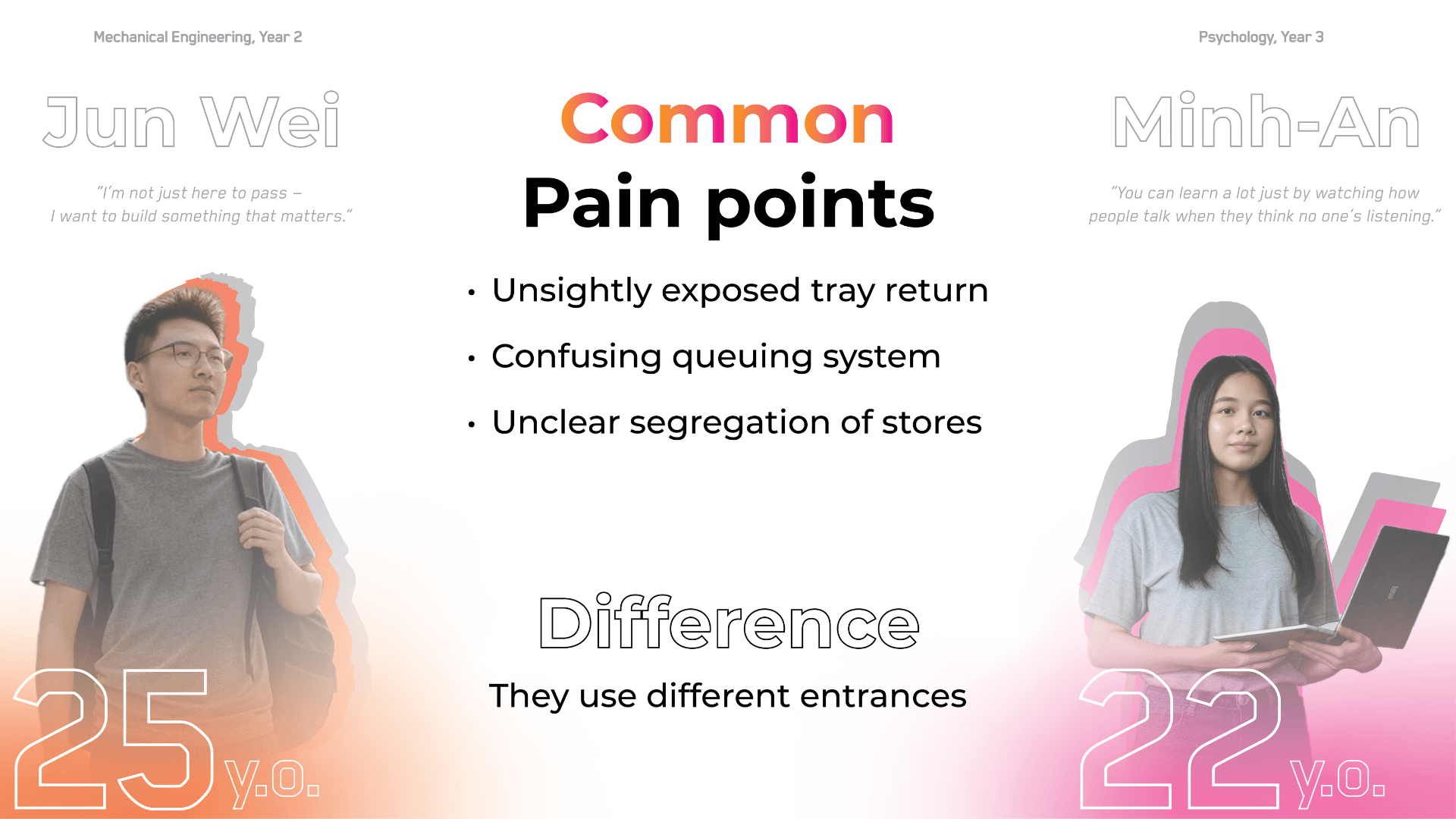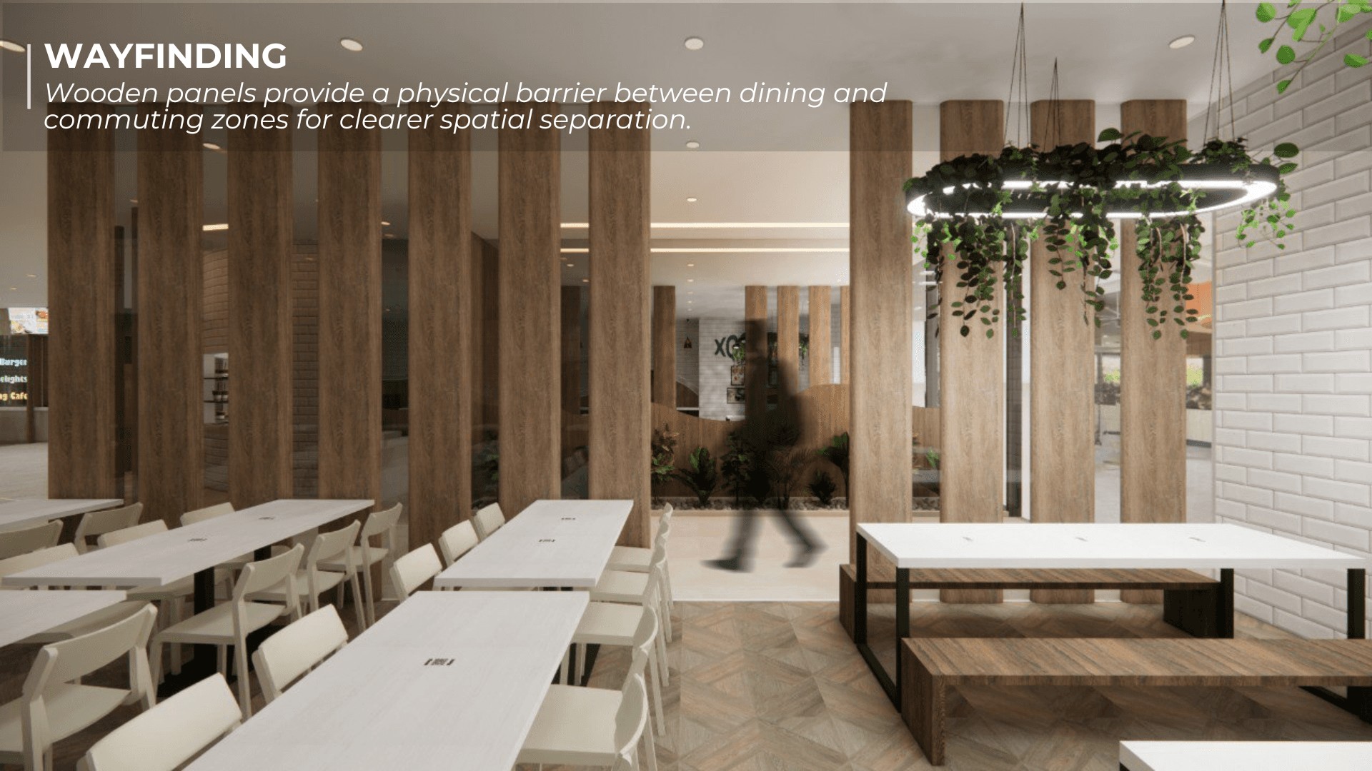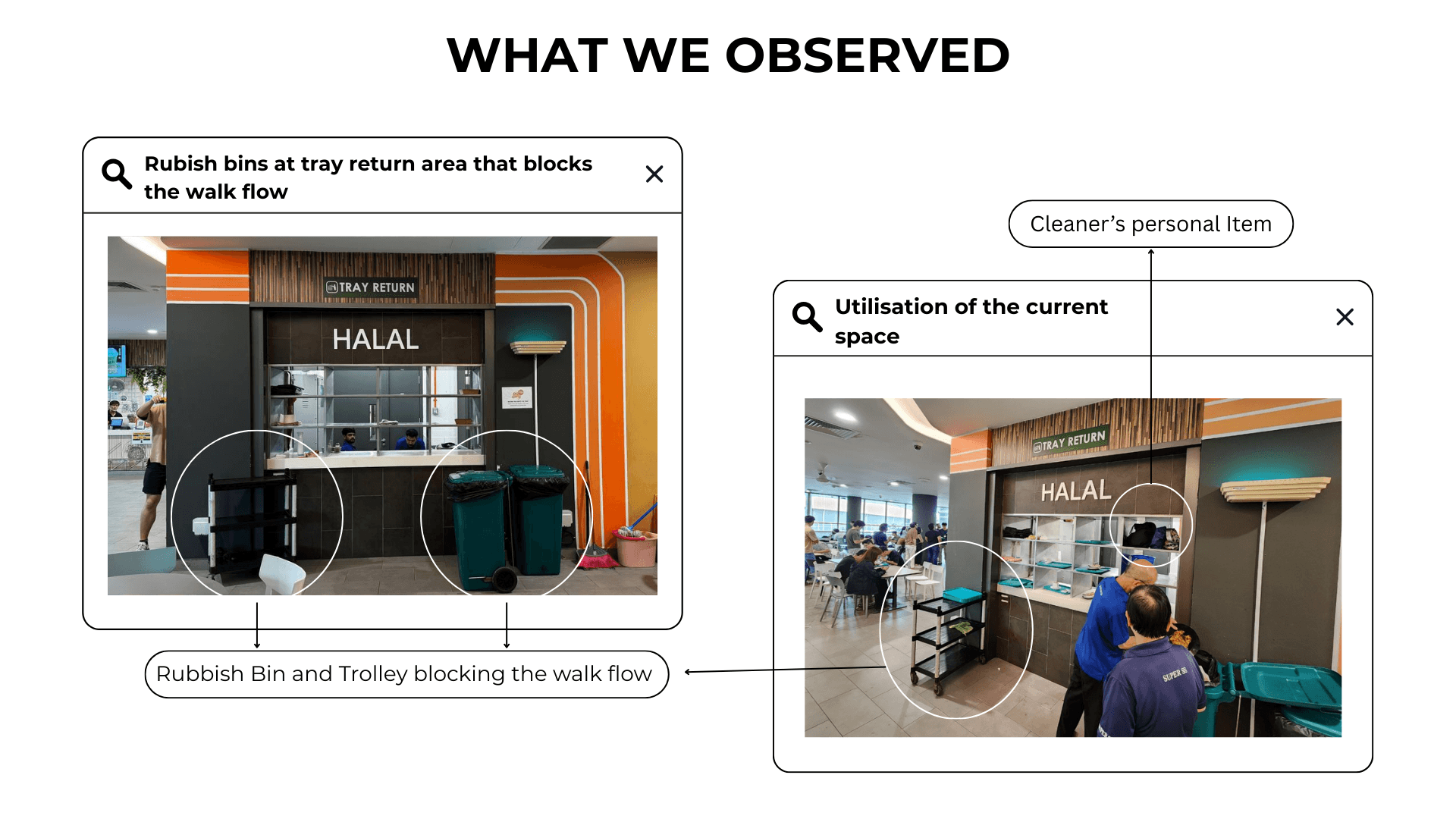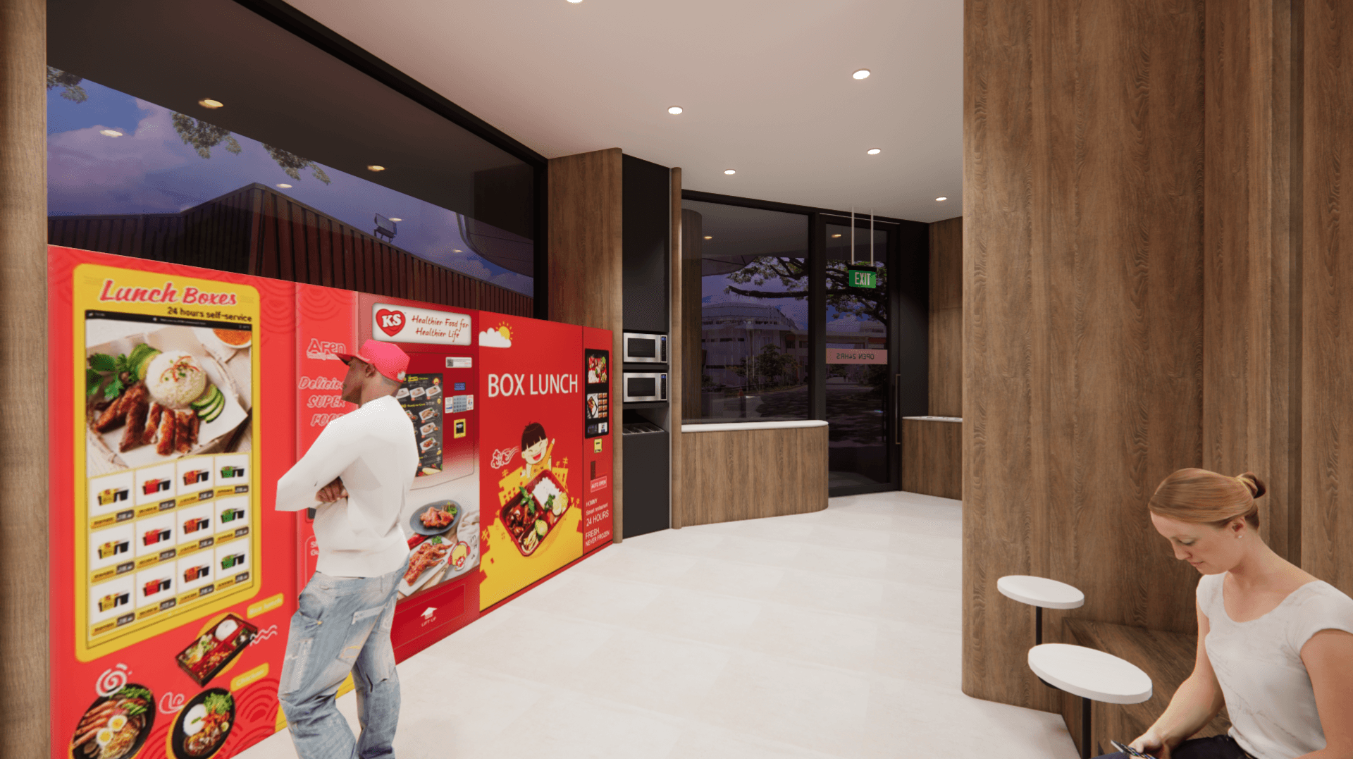Bistro Box Reimagined began as a studio project grounded in human-centred design and the shared chaos of NUS canteens during lunch hour. We spent time observing how students squeezed through narrow walkways, how cleaners made long detours to the dishwashing area, and how stall staff often had to shout order numbers because the screens were placed in less visible areas. These small moments of stress revealed how movement, space and timing shape the dining experience, which became the foundation of our redesign. We reimagined the canteen as a smoother, more intuitive journey. Curved panels guide people through the space while also shielding diners from the mess at the tray return, creating a more pleasant eating environment. Different floor materials subtly direct foot traffic, and a single unified queue removes confusion at the counters. Ordering kiosks and QR menus ease congestion, while clearer routes reduce strain on cleaners. We also introduced Bistro Bites, a 24-hour vending and resting space that repurposes an awkward corner where SDE students often pass through, giving late-night users a quiet spot to recharge.